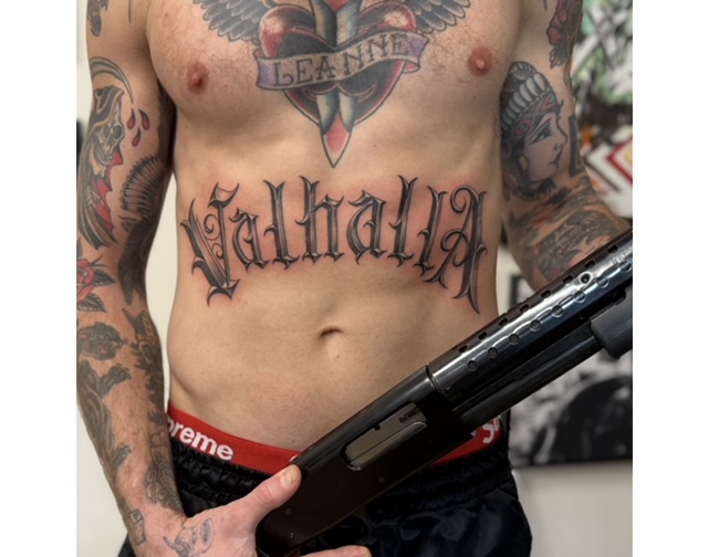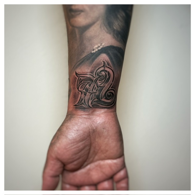 My journey into tattooing began with a deep passion for custom lettering. As a young artist, Mister Cartoon's work ignited my creativity and his original style remains my greatest inspiration. A few years into drawing letters, I booked a tattoo appointment with him with the sole intention of seeking any opportunity to work under his guidance. In a fortunate turn of events, that day led to full-time employment and eventually, after three years, an apprenticeship in his private studio. This experience provided invaluable insight into the operation of a high-level tattoo shop and exposure to a diverse clientele, including numerous celebrities. Mister Cartoon emphasized exceptional client experience for everyone, from high-profile individuals like Kobe Bryant, Travis Scott, Justin Timberlake, Beyoncé, and Eminem, to anyone investing in custom artwork. Now, several years after receiving his endorsement, I am a full-time tattooer committed to upholding his belief in my potential and prioritizing an excellent experience for my own clients.